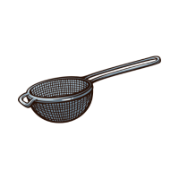 A mesh tool used to separate solids from liquids or sift dry ingredients.