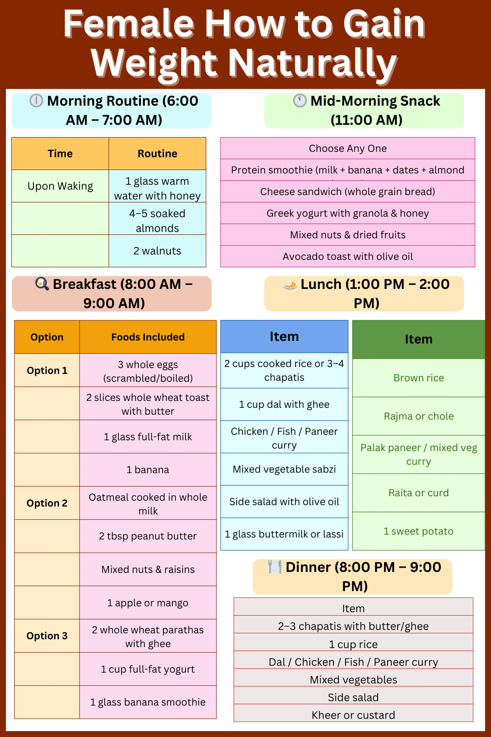 Complete Diet Chart for Women to Gain Weight Naturally